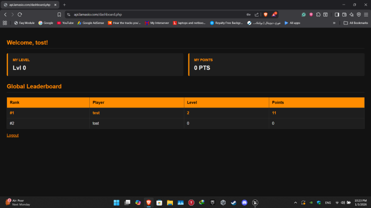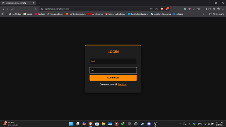 A simple, secure, and easy-to-use Login & Account System for Unreal Engine ๐ฎ, fully connected to a MySQL database ๐๏ธ using the Lama Login System. Players can create accounts โ๏ธ and log in ๐ securely, with all data managed through a powerful web-based admin & player dashboard ๐. The system is lightweight, scalable, and easy to integrate into any Unreal Engine project โก.
